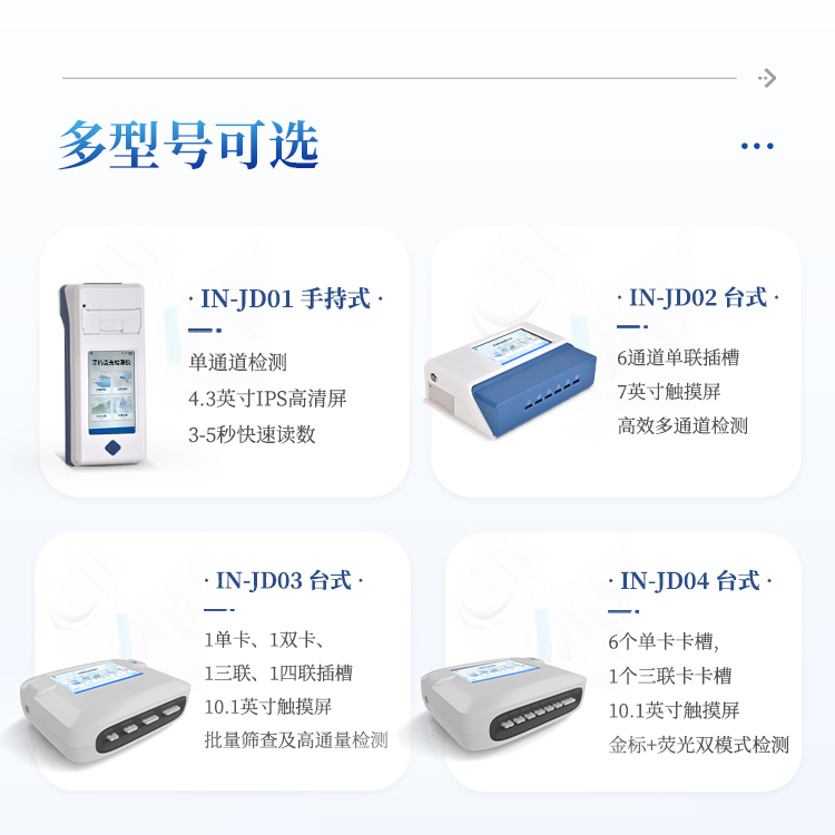 简要描述: 胶体金检测仪Android触控系统结合大尺寸高清屏幕,界面友好,操作简单流畅,无需外接设备;6通道可以同时检测不同项目,显著提升检测效率,满足批量样本快速处理需求;内置质控功能,且支持二维码扫描录入样本信息,避免人工错误;8G超大容量内存,支持按日期灵活查询、预览、删除结果,并生成多样化专业报告。